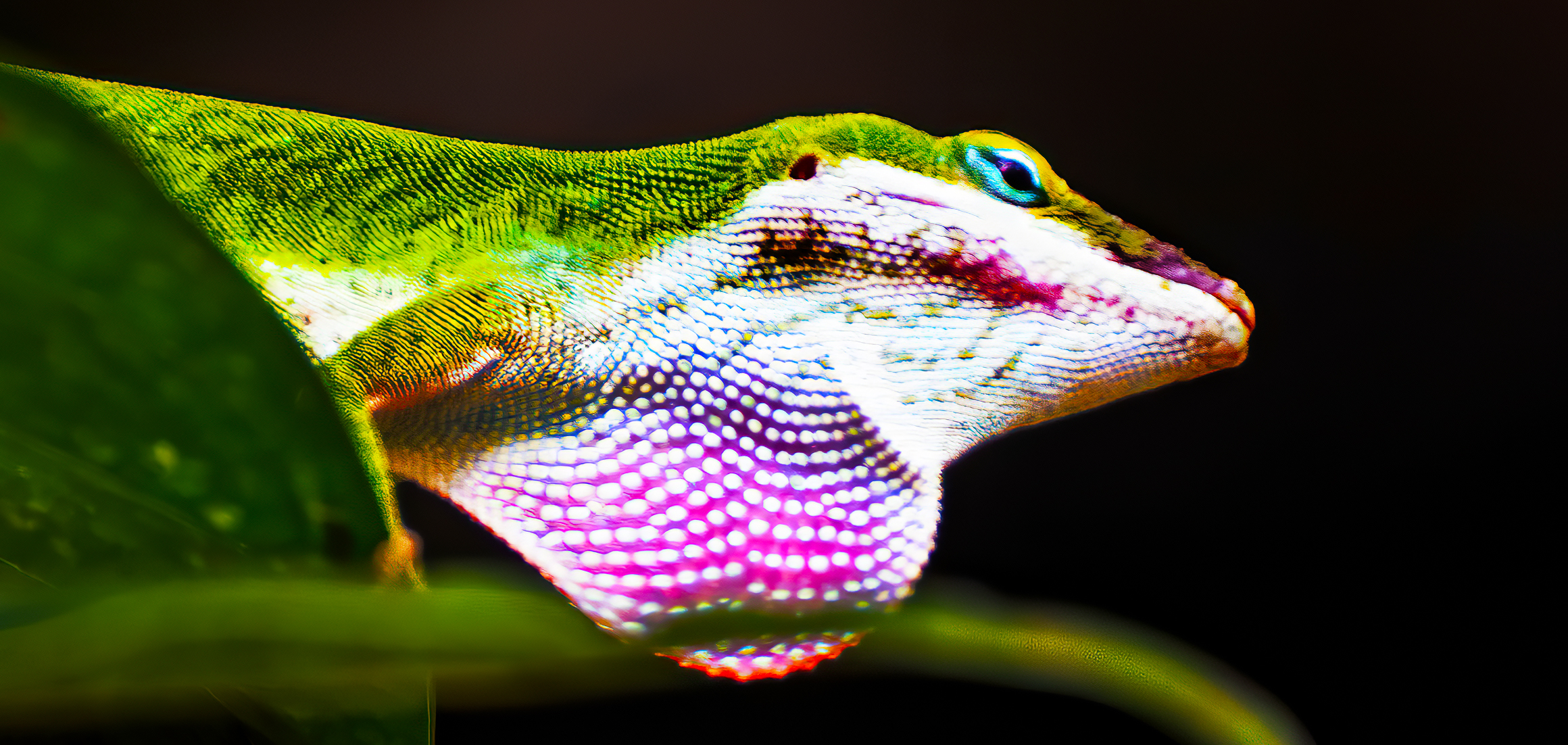 And now, as the shadow darkens under her leaf, her fashion has begun changing in haste from green to brown. Anole carolinensis is acquiring a past and becoming a fable. From her shade she chirps its fleshy moral. What she chirps is that even at the instant when she snapped open her body to its first dark breath, she knew all along.