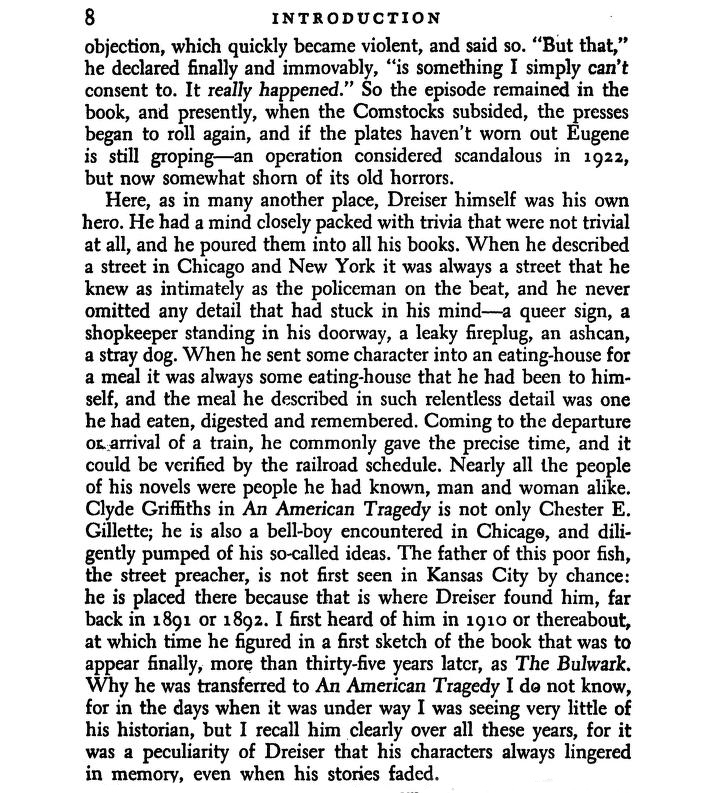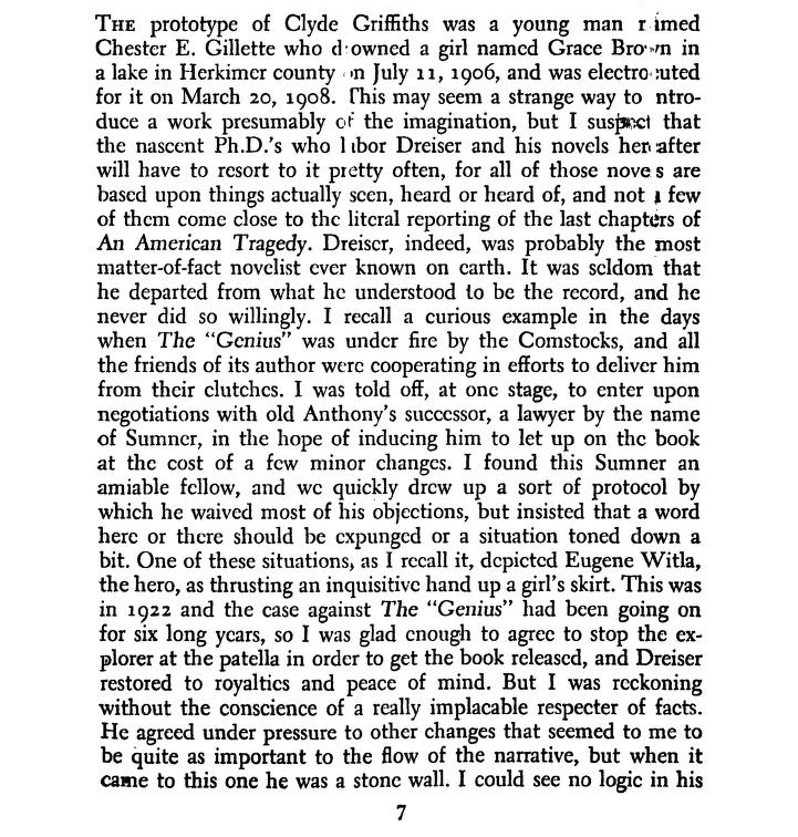“It really happened”: italicizing Dreiser’s words as if they were foreign, Mencken distanced them from his own. He seemed to assume that he himself wrote under the control of a literary norm, whereas Dreiser’s discipline was something like an autobiographical sociology.