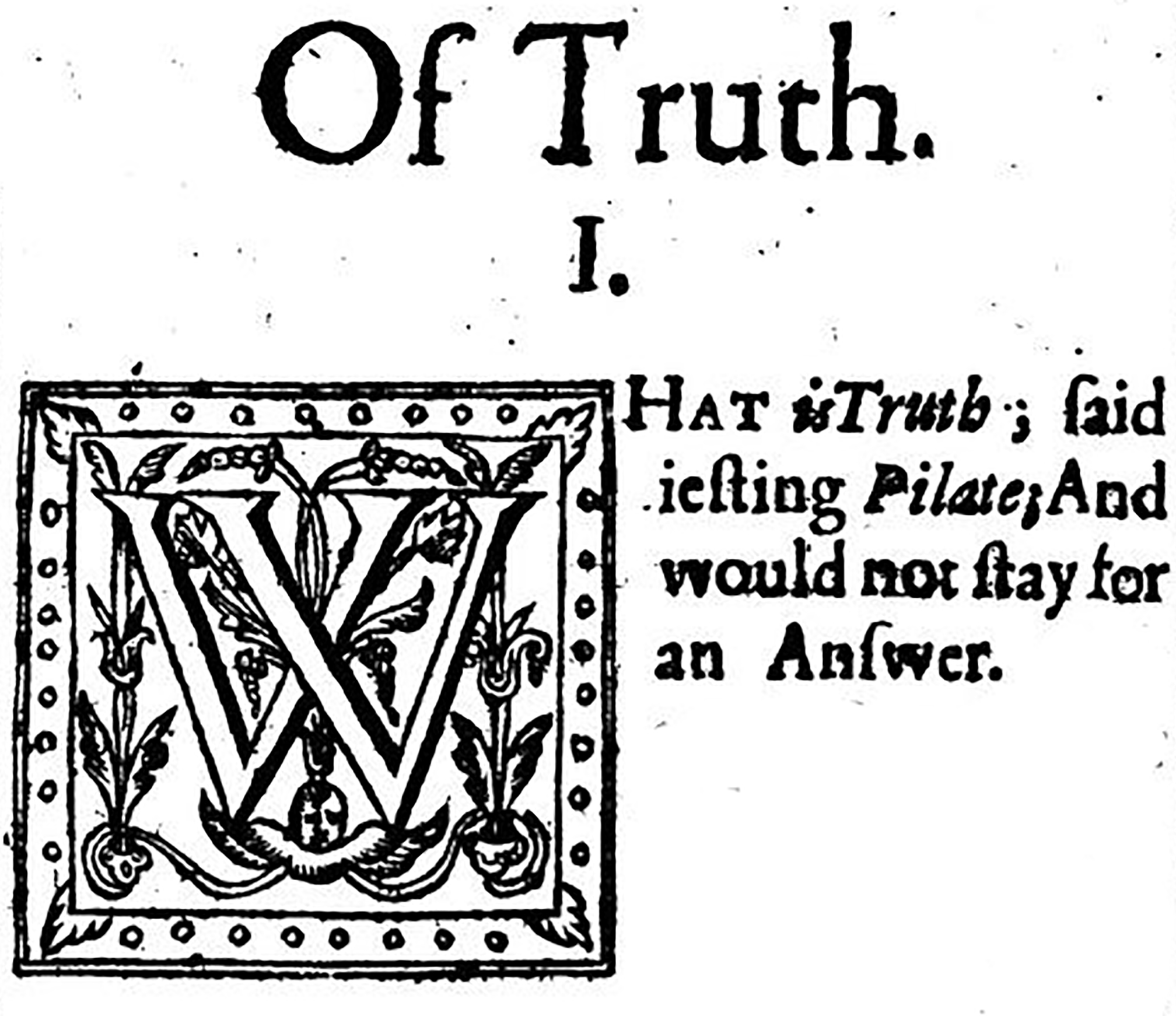 Francis Bacon, “Of Truth.” The essayes or counsels, ciuill and morall, of Francis Lo. Verulam, Viscount St. Alban, 1625.