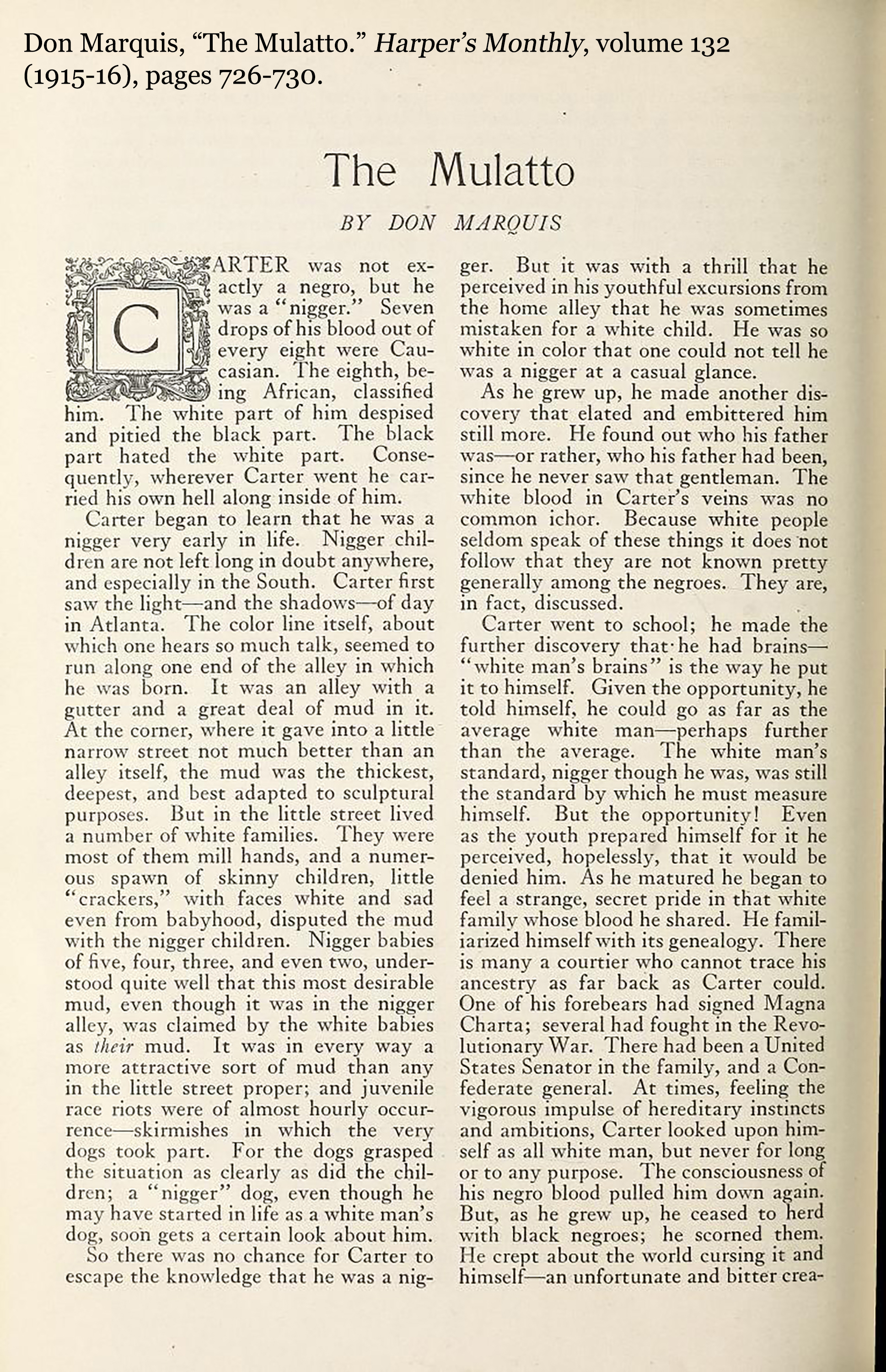 During his shortened life (1878-1937), this story’s author, Don Marquis, expressed himself in genre after genre through persona after persona, but what lives on now in words is only the persona you see in fine print here: Archy the cockroach poet.