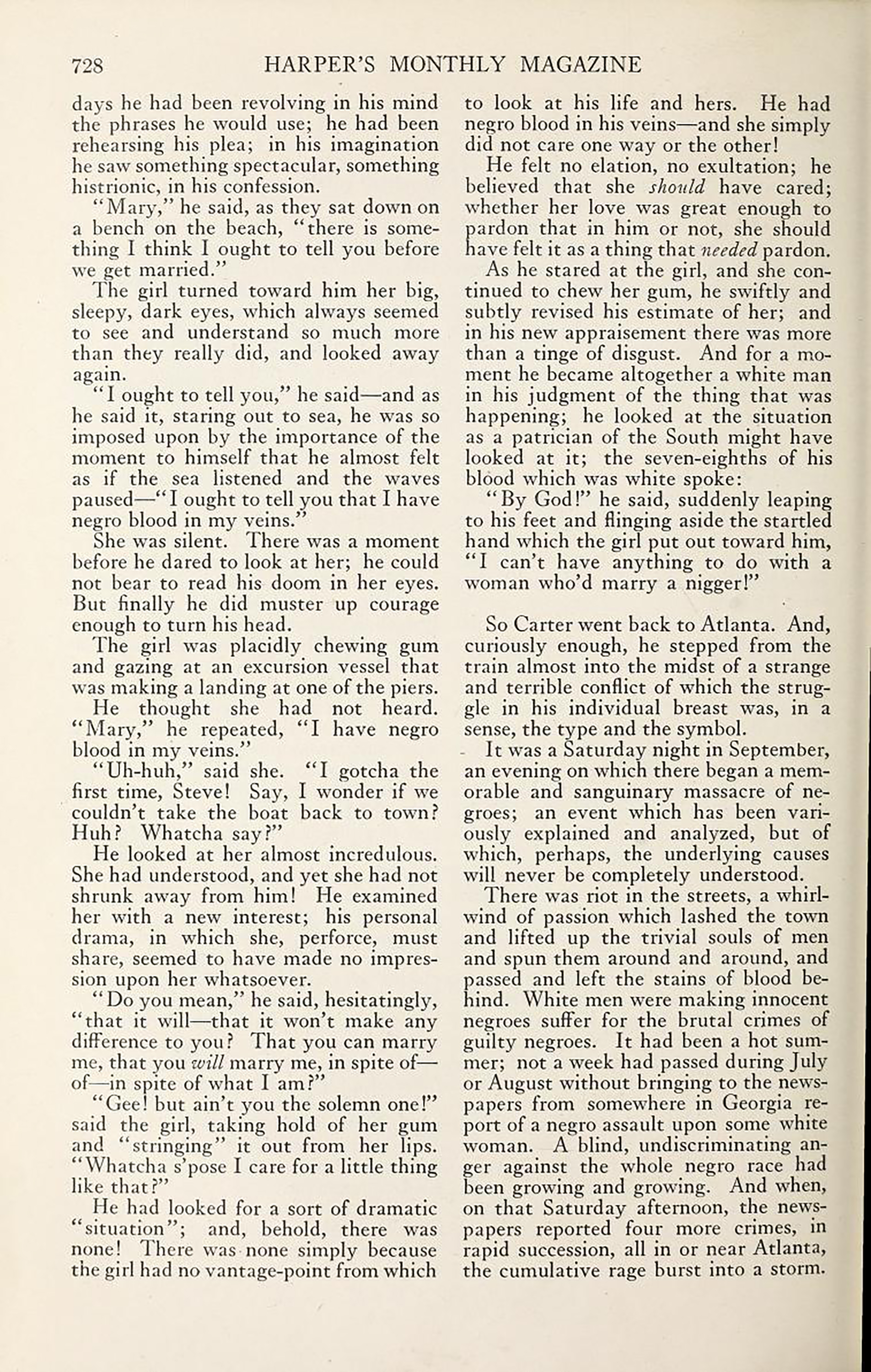The nature of that relationship between us subordinates and those dominants has proved to be historically reversible. The century-old short story you’re about to read was forgotten long ago, and of course (you’re about to say) deservedly. Dating from the epoch of modernist literature, it never became literature itself. On the page before you it’s only old journalism: a few paragraphs on browned old paper, written in words whose developing language system moved out from under them and left them behind. But this year, see if this story doesn’t affect you in a way that seems new: new again for the first time in a century and therefore actually new. The developing language system has given you new powers and simultaneously deprived you of old ones.