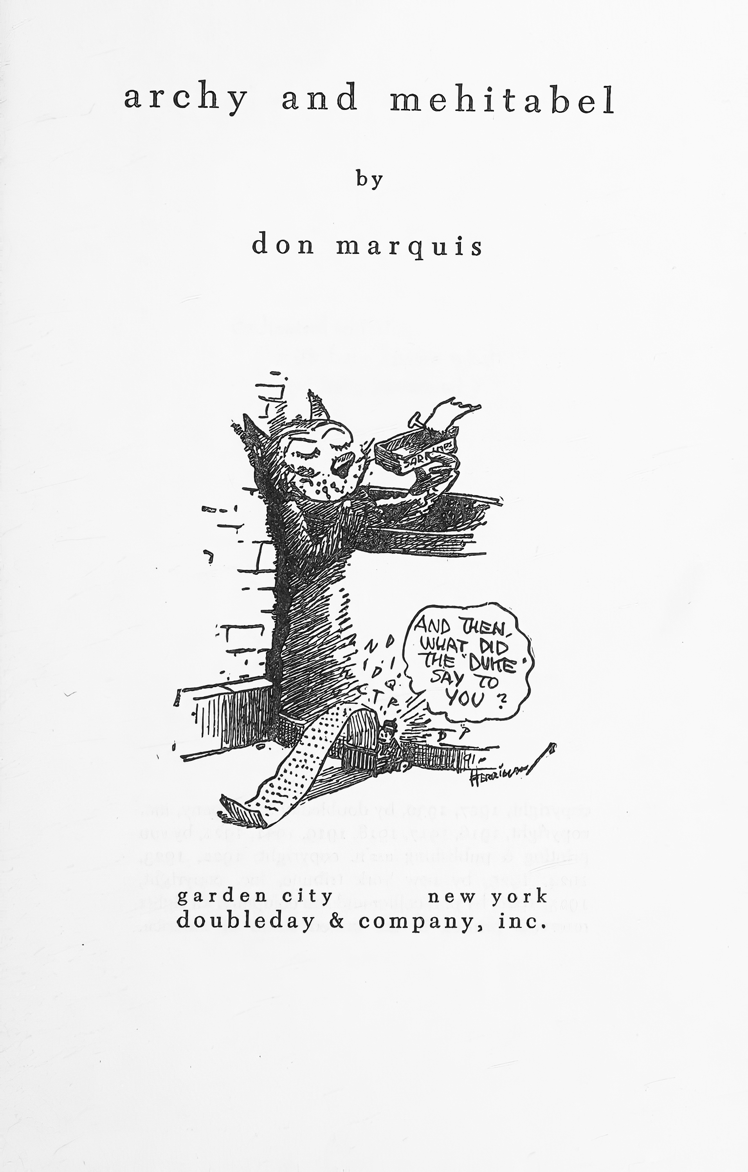 And Archy himself was later to undergo the defining final stage of his metamorphosis at the hands of a graphic artist who (unlike Marquis) had a line in modernist textuality. That was George Herriman, the creator of Krazy Kat.